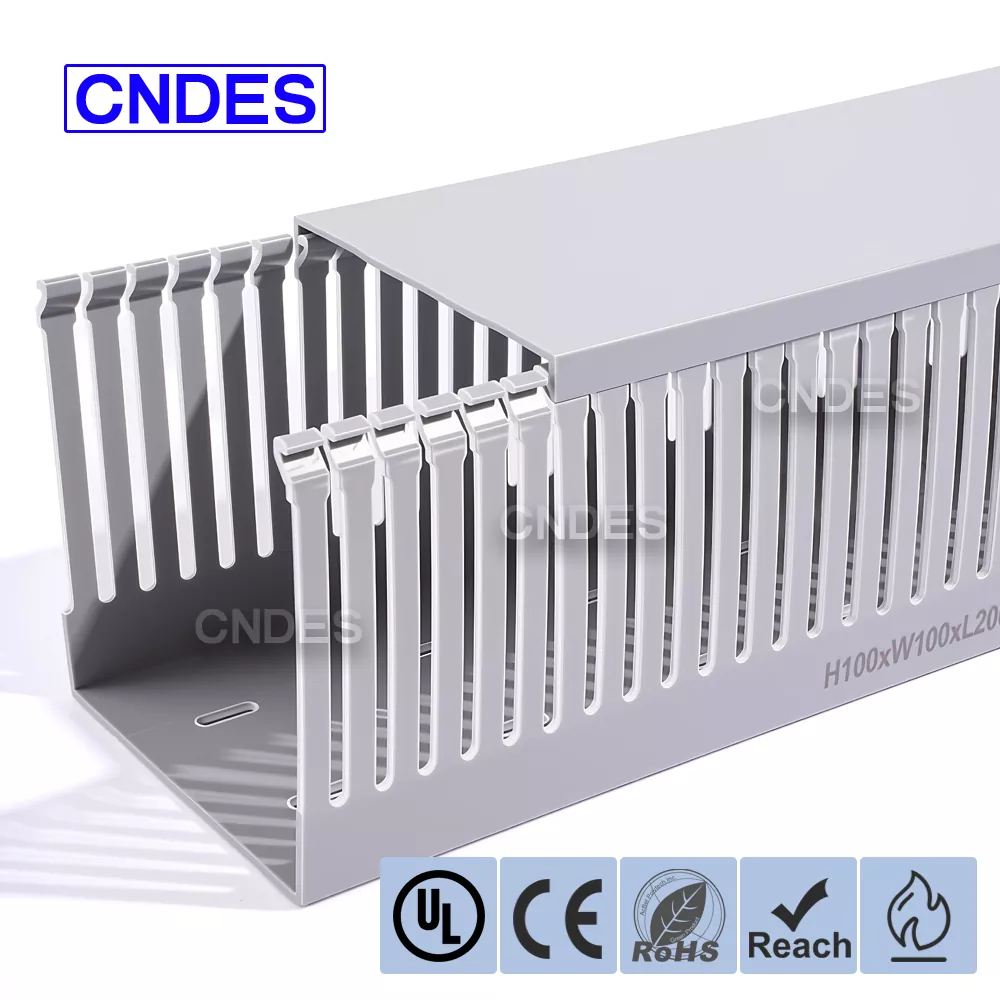 La nostra canalina di cablaggio in PVC con scanalature flessibili 100×80 offre ampio spazio interno e una struttura scanalata flessibile, consentendo un facile instradamento dei cavi, regolazioni o espansioni sul campo. È ideale per applicazioni in cui l'utilizzo dello spazio e la flessibilità sono fondamentali, come armadi elettrici, pannelli industriali, sistemi di automazione e quadri elettrici.
