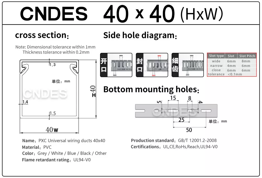 Puoi essere certo di acquistare una canalina di cablaggio in PVC 40 × 40 di qualità con copertura dalla nostra fabbrica (CNDES). Altezza 40 mm e larghezza 40 mm.