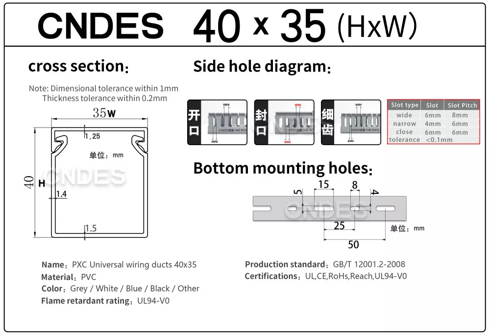 CNDES è leader nei produttori e fornitori di canaline per canaline in PVC scanalato. Qui presenteremo le nostre passerelle portacavi da 40 mm di altezza, incluse 40*25, 40*30, 40*35, 40*40 e 40*60.