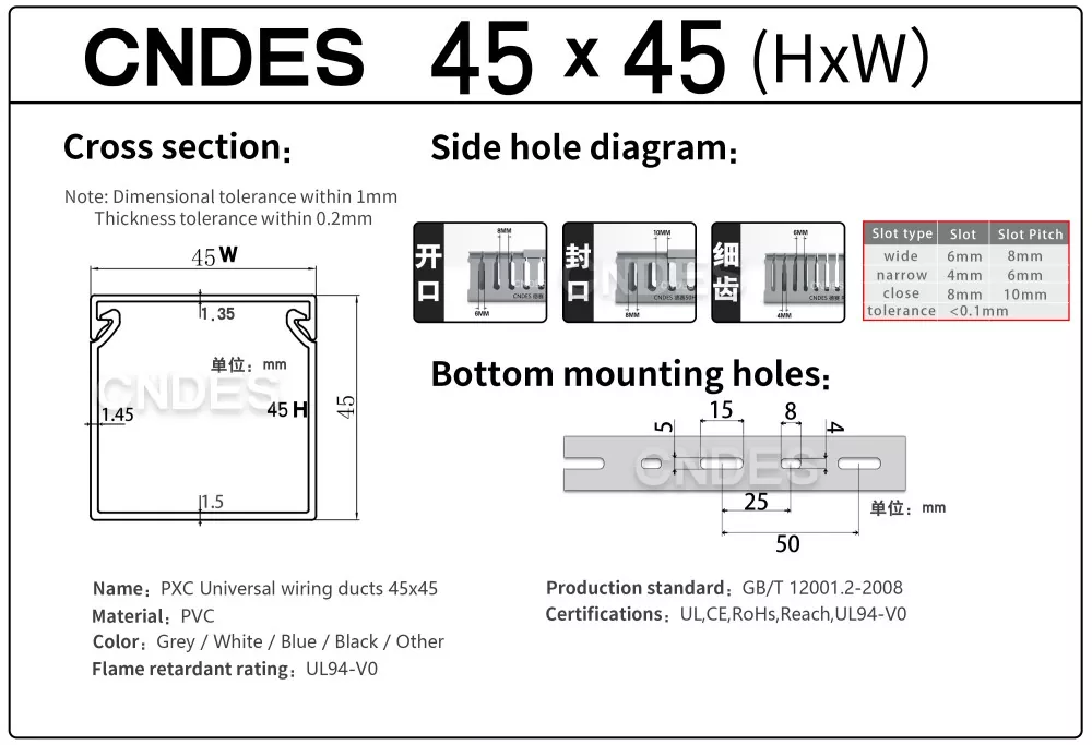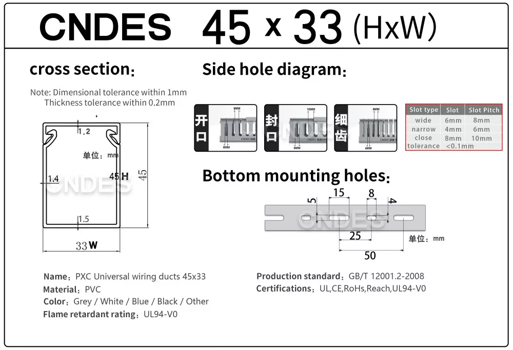In qualità di produttore professionale, vorremmo fornirvi un condotto di copertura del filo in PVC scanalato CNDES di 45 mm di altezza. Compreso 45*25, 45*33, 45*45.