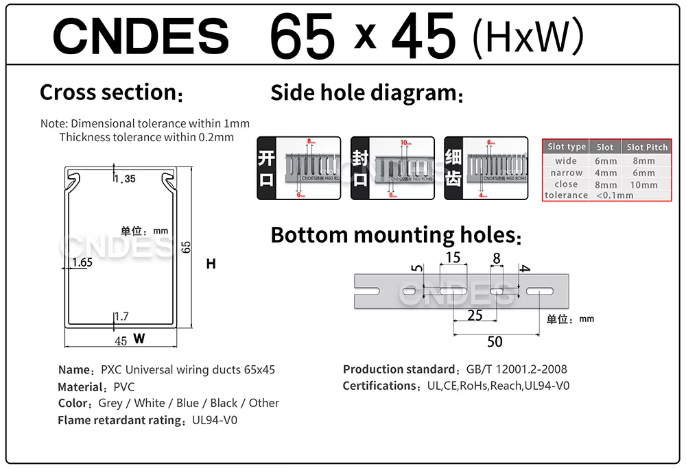 Se acquisti condotti di cablaggio in PVC con scanalatura grigia 65 × 45 personalizzati da un produttore e fornitore affidabile in Cina, CNDES offre qualità costante, personalizzazione flessibile e servizio professionale.