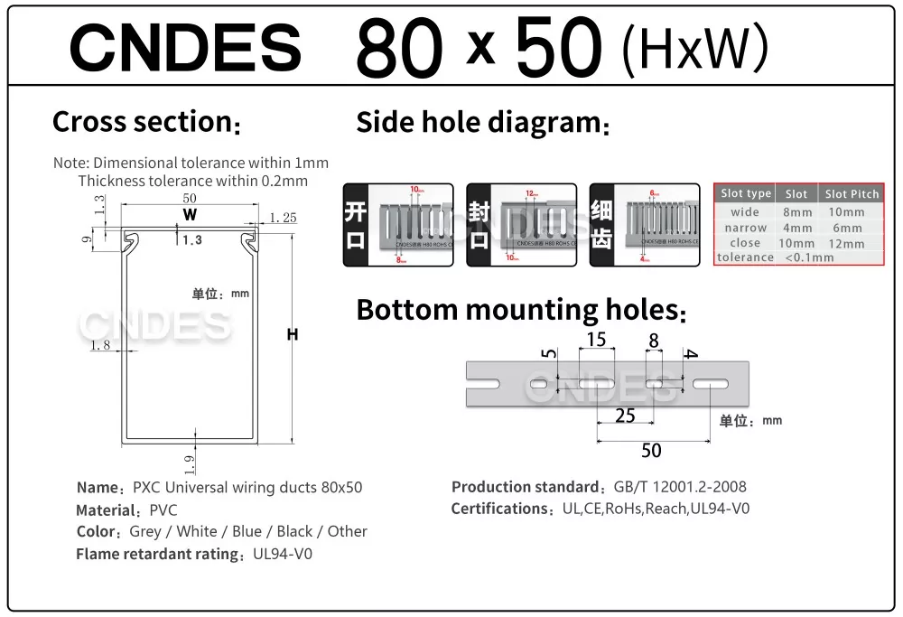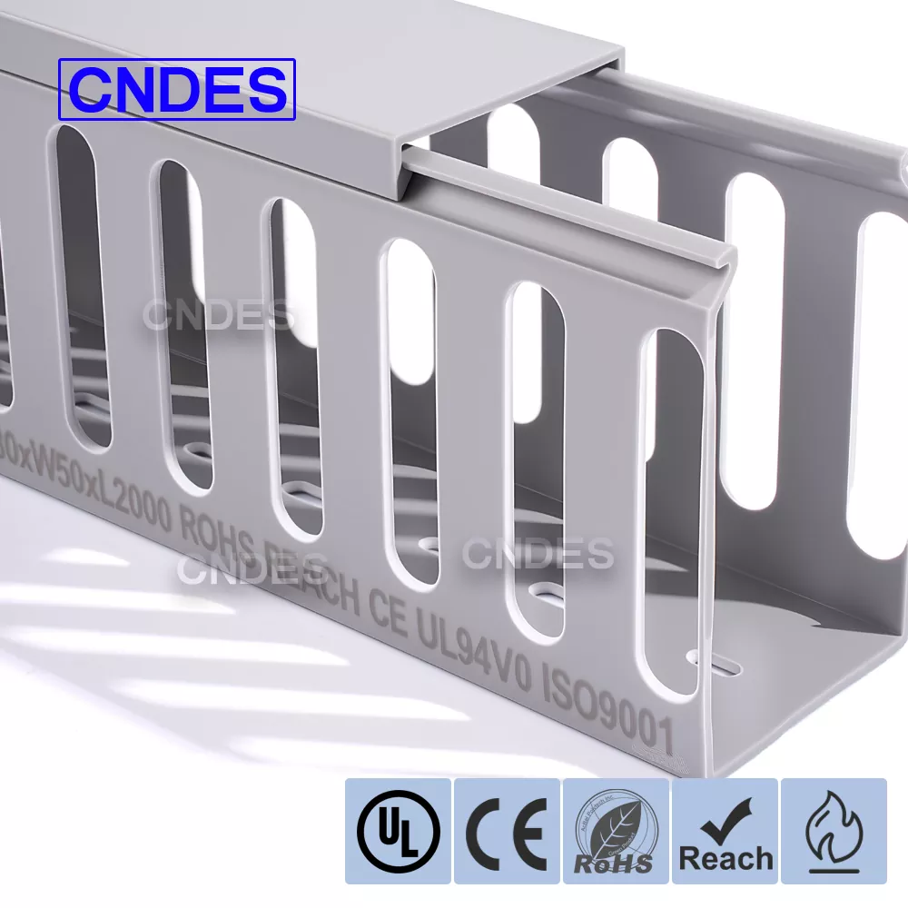 CNDES è un produttore professionale di passerelle portacavi scanalate in PVC con sede in Cina. Qui presenteremo il nostro organizer per cavi con pannello in PVC scanalato 80×50, dove 80*50 mm rappresenta un portacavi con un'altezza di 80 mm e una larghezza di 50 mm.