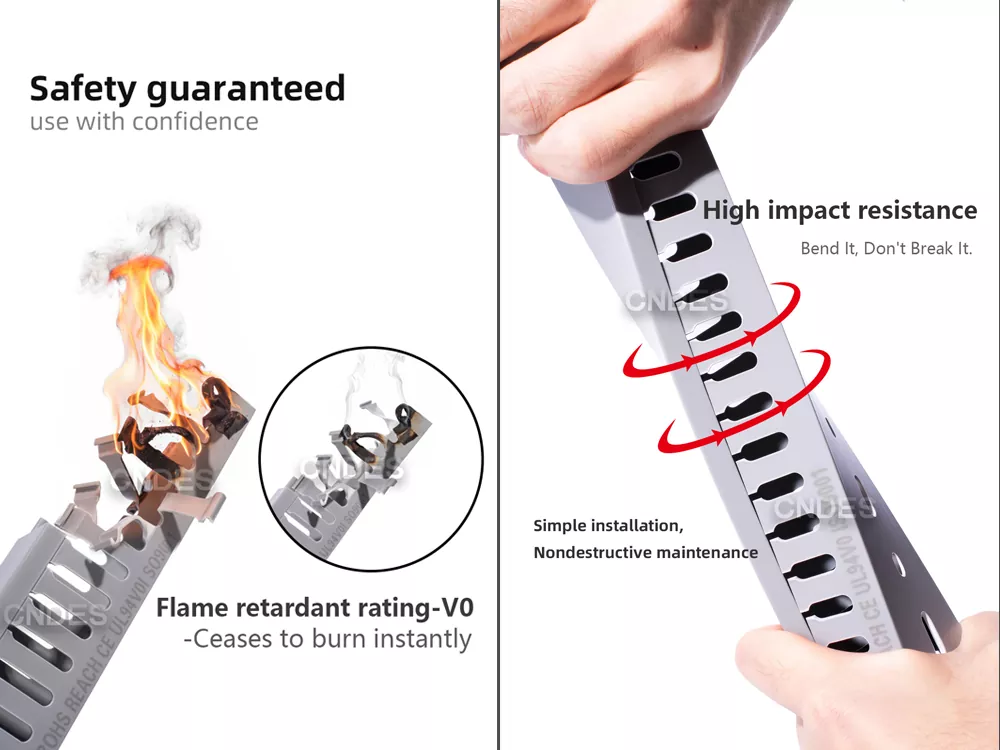 Il nostro organizer per cavi con pannello in PVC con fessura 80×50 è ecologico, ignifugo e altamente resistente agli urti e ha superato numerose certificazioni autorevoli.